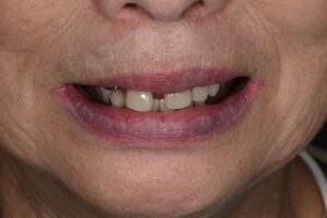 75歳の女性の方で、長年、上下の入れ歯を使用していたが、入れ歯が全く安定せず、不快感を感じていた。 食事のたびに、歯ぐきに痛みを感じていたため、食べ物はハサミやミキサーで細かくするか、柔らかい食べ物しか食べることができず、満足のいく食事をすることができないことにとてもコンプレックスを感じていた。 食べ物に制限があるため、外食することも億劫となり、友人に食事に誘われても、断ることが多くなっていた。 体重は減り、気持ちが内気になっていたが、このままでは余生を楽しめないと思い始めました。 なんとか、美味しく食事をできる方法はないかと、インターネットで精密入れ歯やインプラント治療について調べたところ、当院が入れ歯やインプラント治療を専門としていること、そして当院の治療コンセプトに共感を感じたとのことで、藁をもすがる思いで来院されました。